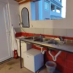 Caravan With Air Condition And Private Toilet apartment includes self-catering facilities like an electric kettle and a refrigerator for guests' convenience.